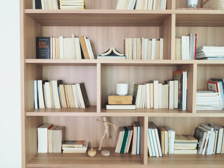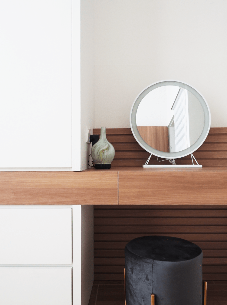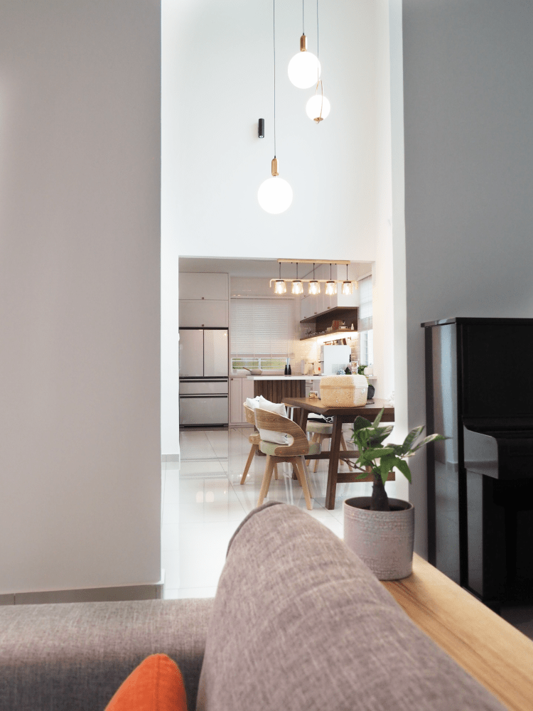 Books for him, for her, and the little one. This bookcase was designed to sustain a growing book collection for the family. From the couch to the design of the door, everything in this room were curated to give a zen mood.